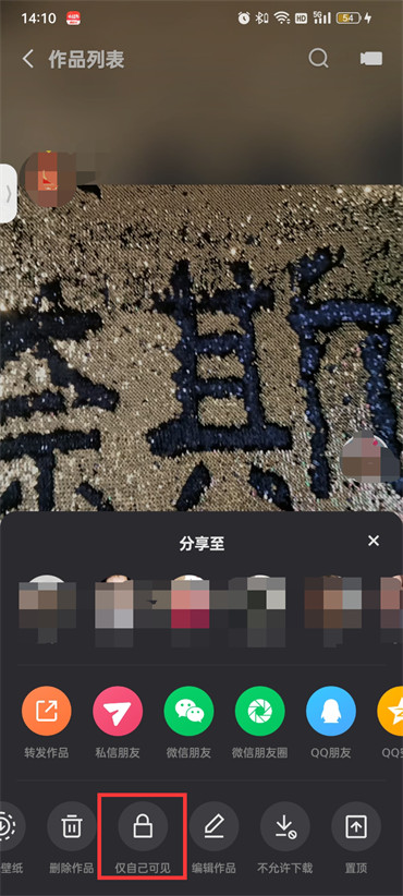 3.点击过后在页面下方弹出的选项中点击【仅自己可见】即可;