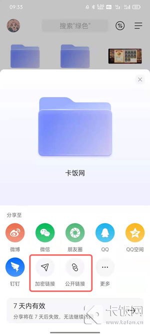 5.选择好有效期之后,点击需要分享的渠道,除了【加密链接】之外,所有分享渠道都是公开访问链接;