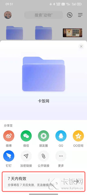 4.点击下方的【7天内有效】,设置分享的文件有效期;