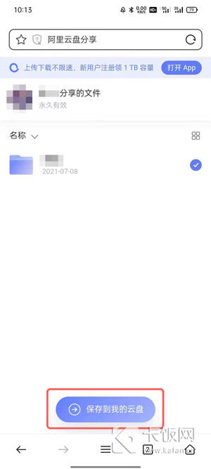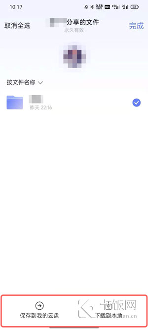 3.移动端打开分享链接后只能保存到云盘,然后再下载到设备上;