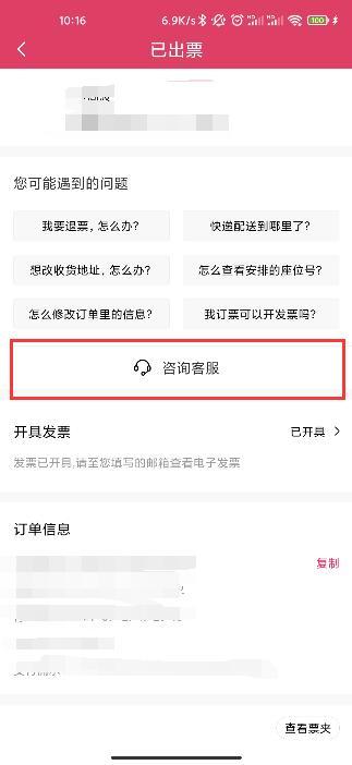 4.在已出票页面下滑找到【咨询客服】联系客服;