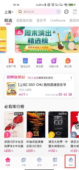 1.打开大麦网APP,点击主界面右下角的【我的】进入个人中心;