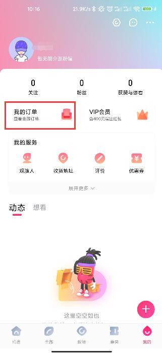 2.在个人中心中点击【我的订单】查询全部订单;