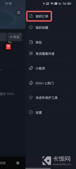 2、然后选择【我的订单】进入查看在抖音上的所有交易订单;