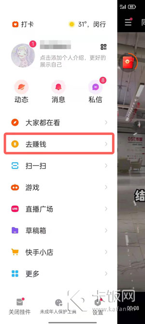 1、登录快手极速版app,点击左上角的【三】打开左侧菜单栏;