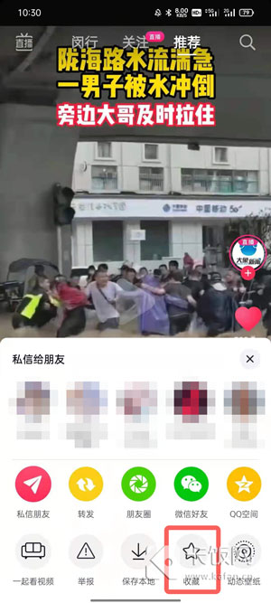 2、找到需要收藏的视频,点击右下角的【分享】按钮;