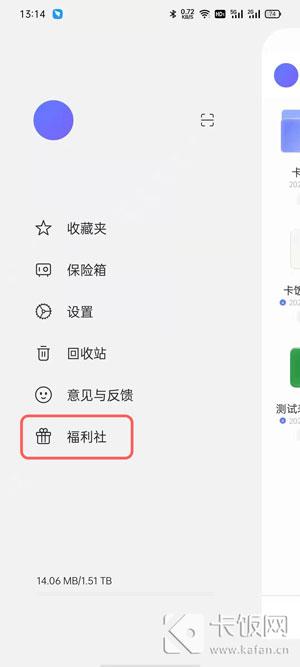 2、在最下方记住自己的当前容量,点击【福利社】进入;