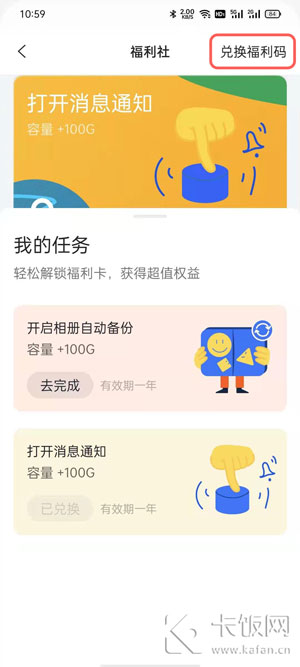 3、点击右上角的【兑换福利码】,使用领取到的扩容码;