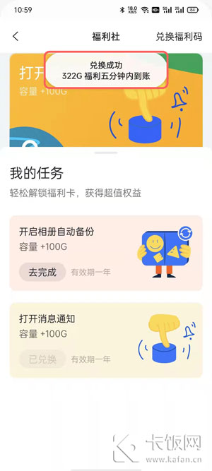 5、随后即可兑换到对应的网盘容量了,兑换的容量会在五分钟内到账;