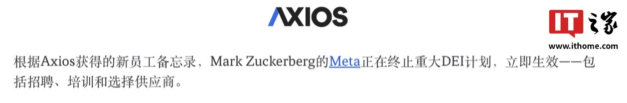 - Meta将不再设立专注于DEI的工作团队,并解散该团队。