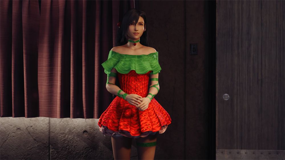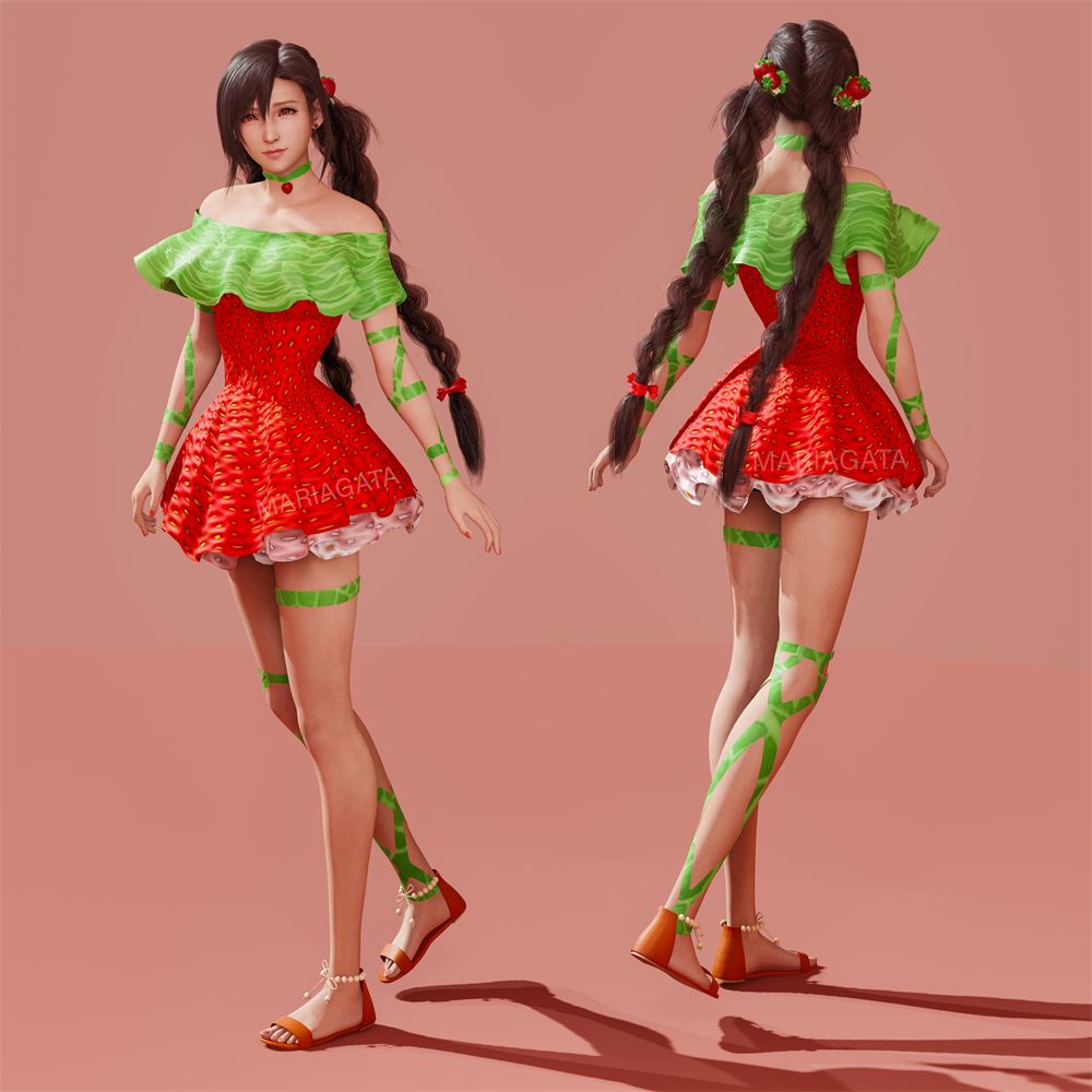 去年,MODER大佬“Maria”在nexusmods网站分享了自制的《最终幻想7重制版》“草莓”蒂法,该MOD中蒂法身穿可爱的草莓套装,看起来非常香甜诱人。
