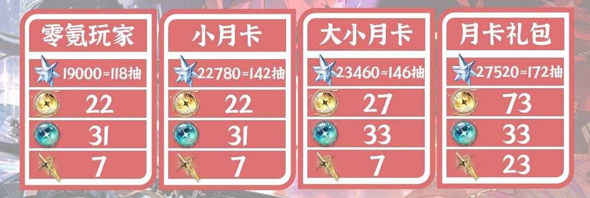 不同类型玩家星声与抽数收益