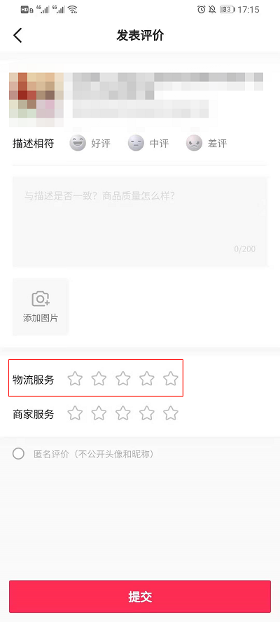 5、然后在打星的物流服务一行,给一星就完成了对物流的评价。