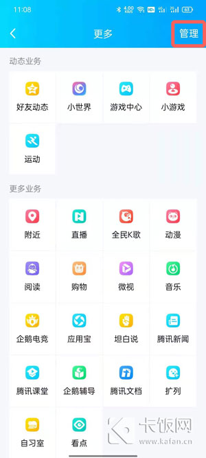 3、在设置中,点击右上角的【管理】;