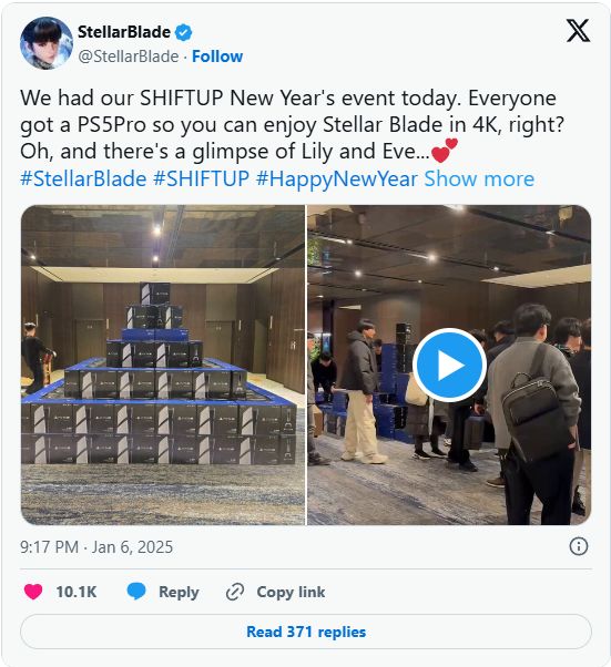 由知名绘师金亨泰领军的游戏开发商 SHIFT UP,在 2024 年凭借 PS5 独占大作《剑星》的爆红,以及《胜利女神:妮姬》的稳定佳绩,成功在韩国证券市场上市。随着 2025 年的到来,《剑星》官方揭晓了 SHIFT UP 的新年活动,豪气送出每位员工一台 PS5 Pro,让大家可以在 4K 高画质下畅玩《剑星》,引发热烈关注!