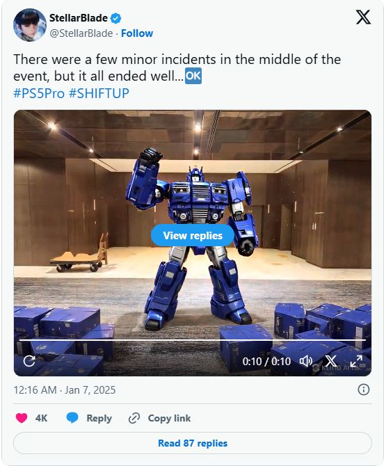 《剑星》官方还特别推出了一支由 AI 生成的幽默短片,表示:「活动过程中虽然出了一些小插曲,但最终都圆满结束」影片中展现 PS5 Pro 小山突然爆炸,变形组装成一台 PS5 Pro 版的「变形金刚」。