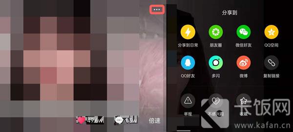 6、正常模式下的分享按钮变成了右上角的【…】更多按钮,点击即可分享、举报、收藏操作。