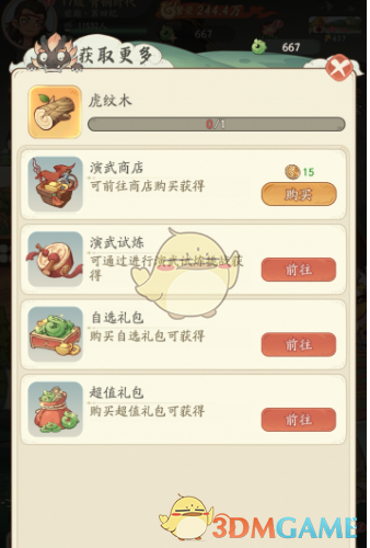 2、商城购买:在商城内,你可以购买各种礼包,如自选礼包、超值礼包等,这些礼包中不仅包含虎纹木,还有许多实用的道具。
