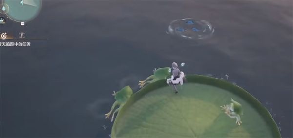 3、另外两个钓鱼点需要青蛙开船带你去水的中间,然后在船的左右两侧钓鱼。