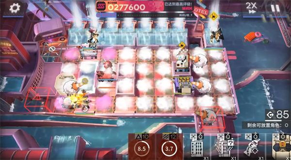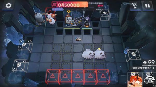 4、倒计时1分半时,注意红门刷新滑板羊,利用重装干员阻挡,避免地板变红导致扣分。