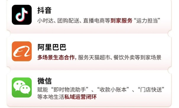 今年,许多餐饮品牌、大型商超通过小程序、社群等私域渠道开展年夜饭预订、新春茶饮上新、年货售卖的预热营销,同时,抖音本地生活直播等业态的崛起也为全品类商家解锁更多营销渠道。在保障高品质配送之外,没有商流平台捆绑、独立第三方定位的顺丰同城成为商家合作首选。顺丰同城可一站式接入全渠道生态,通过智能化调度、定制化服务帮助商家集中资源和节省成本,进一步实现优化经营、扩大单量、提升利润。此外,顺丰同城亦与微信、抖音等渠道建立了深度合作关系,帮商家持续拓宽销售,实现春节期间“线上全域、线下客流”生意两手抓。