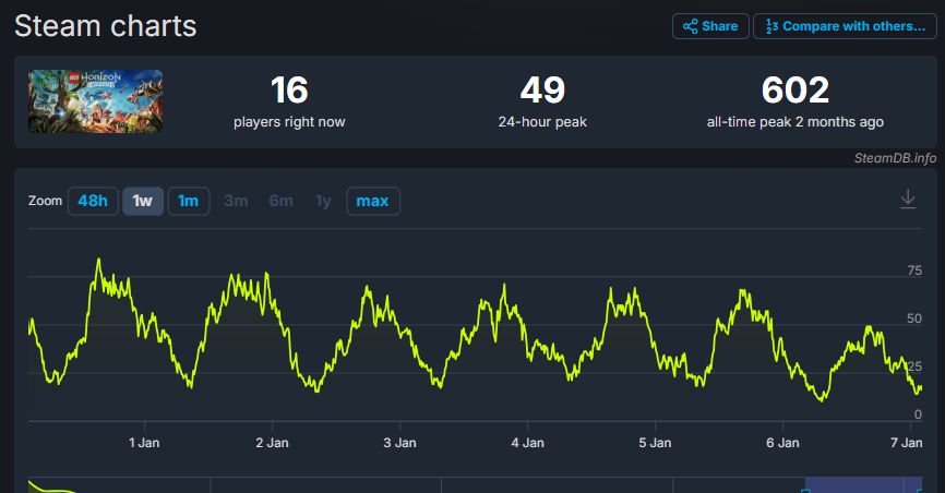据此前报道,《乐高地平线大冒险》在PS5和PC上的销量十分惨淡。截稿之前,本作在Steam平台的在线人数仅有16人,在线玩家峰值也只有602人,甚至不及此前暴死的《星鸣特攻》(697人)。这个成绩也它成为目前为止表现最差的PS第一方游戏。