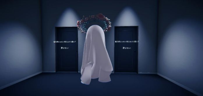 《甜甜圈的洞》游戏中,开场是一个神秘场景,一个巨大的甜甜圈下面挂着一个幽灵一样的白布,玩家会回答来自游戏的个中灵魂发问,解开甜甜圈里那个洞究竟藏着什么的诡异谜题。