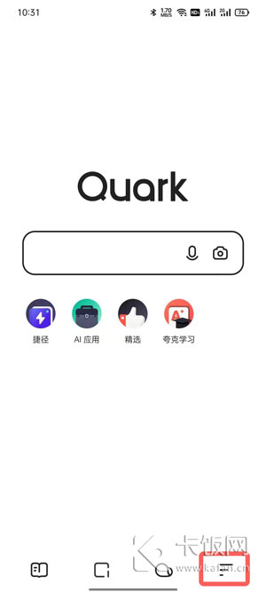1、打开夸克浏览器,点击右下角的【三】按钮;