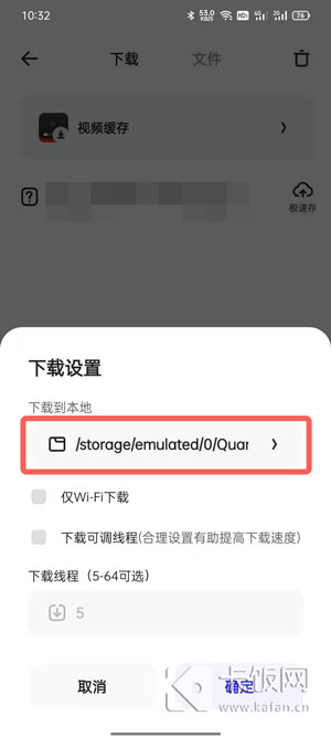 5、在最上方就是文件下载位置,可通过返回按键返回到上一级菜单,选择或者新建文件夹,选择后修改文件下载位置。