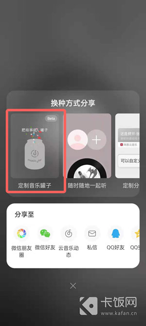 3、点击右上角的【分享】或者【罐子】按钮,选择【定制音乐罐子】;