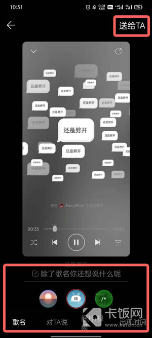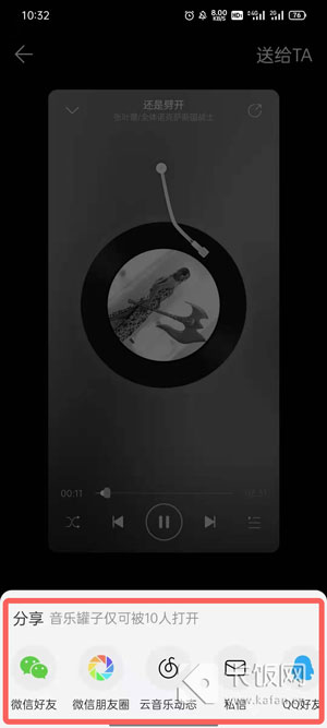 6、点击右上角的【送给TA】制作你的音乐罐子,然后选择将其分享给你的好友即可;