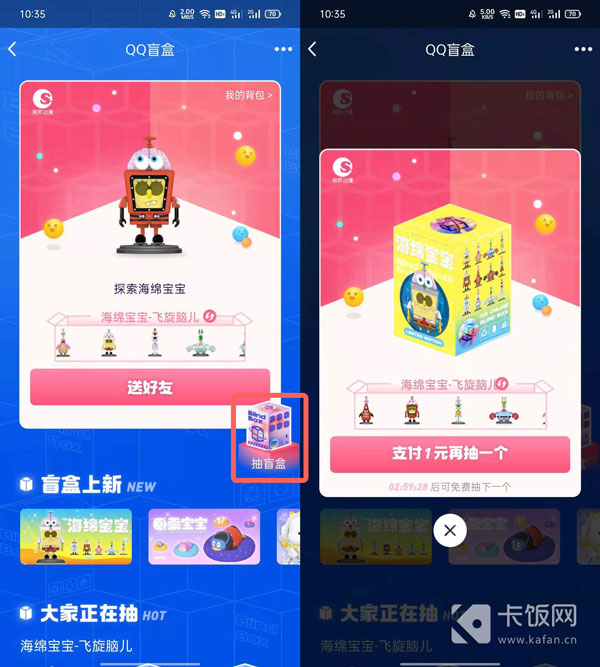 5、如果想要立即抽盲盒,可点击任意盲盒抽奖,或者右侧的【抽盲盒】,支付一元再次抽盲盒;