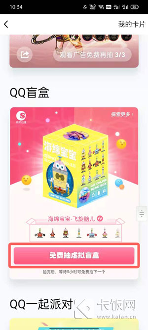 3、上下滑动页面找到【QQ盲盒】,点击【免费抽虚拟盲盒】;