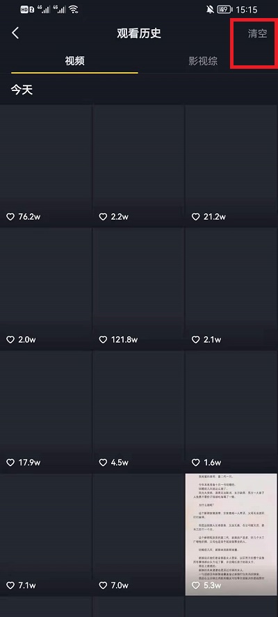 3、然后在界面中只需要点击右上角的【清空】就可以删除所有的观看历史记录,并且不可恢复。
