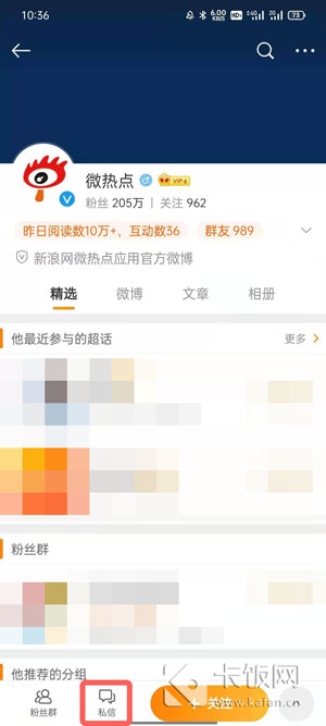 2、点击进入微热点账号主页后,点击左下角的【私信】;
