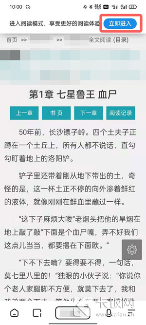 2、进入小说章节之后,如果该网页支持阅读模式,在顶部则会有提示,点击【立即进入】进入开启阅读模式;