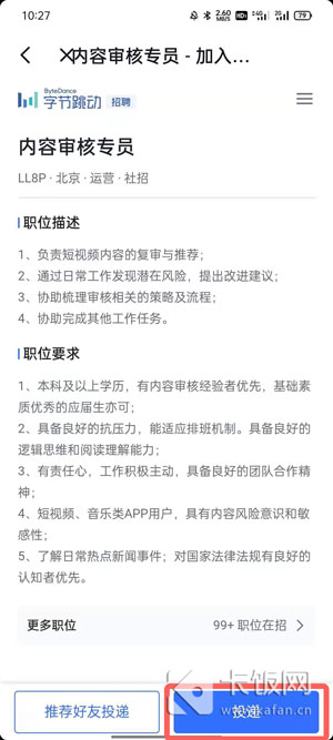 8、仔细阅读该职位对审核员的要求,满足要求则点击【投递】上传自己的个人简历,等待官方面试通知。