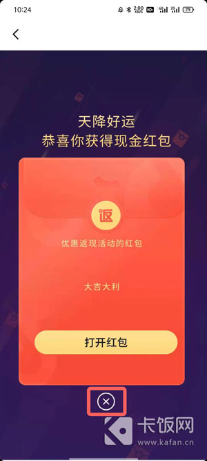 4、随后会出现一个现金红包,点击下方的【关闭】,该红包为一个虚假活动,只为测试大家的反诈骗能力;