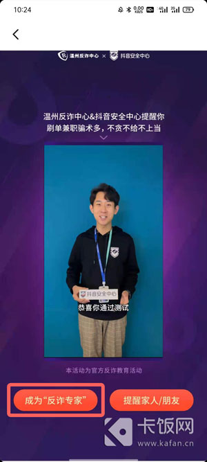 5、然后点击【成为“反诈专家”】参加反诈能力测试答题,点击这里查看答案;