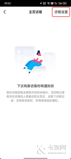 5、点击右下角的【开启访客】,之后同样开启主页访客功能的用户访问你的主页时,将收到访客消息通知;