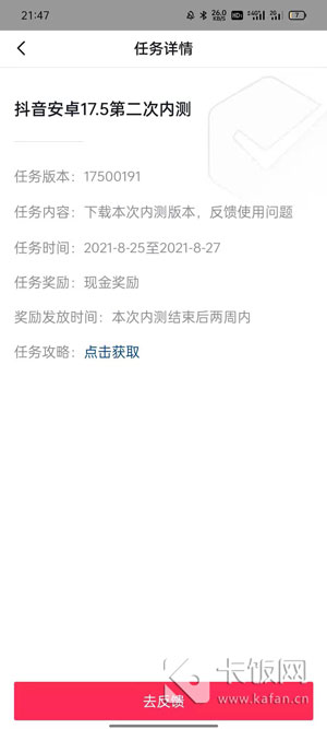 8、更新内测版本后,可在指定的任务时间内,提交版本BUG可瓜分现金奖励。