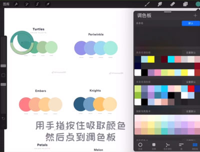 3、然后点击新建的调色板选中,在使用手指按住想要取色的颜色,即可添加到色卡中。