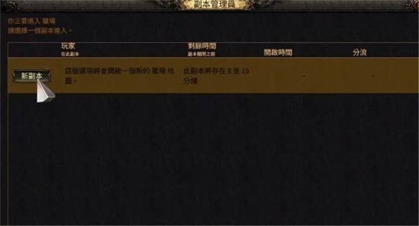 在副本管理员窗口中,选择“新建副本”按钮来生成一个全新的地图副本。