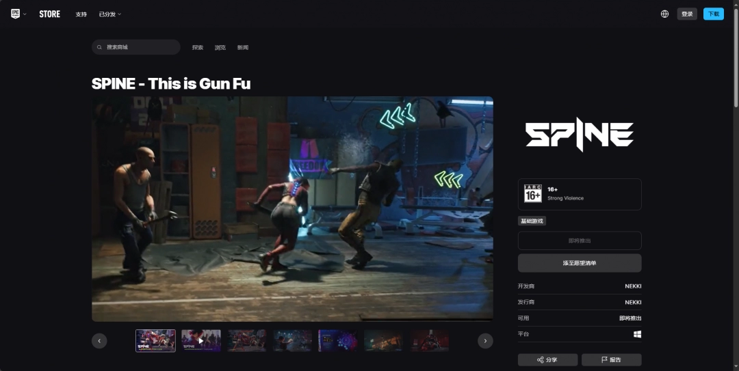 可以去Steam平台下载,地址是:https://store.steampowered.com/app/1731290/SPINE__This_is_Gun_Fu/。