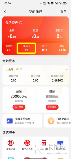 6、然后点击我的资产下的【礼品卡】;