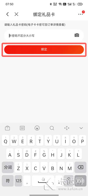 4、然后在卡密输入框中,输入卡密码点击【立即绑定】即可;