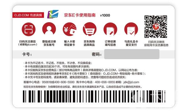 8、在京东E卡实体卡背面,找到密码,并刮开背面的图层获得卡密码;