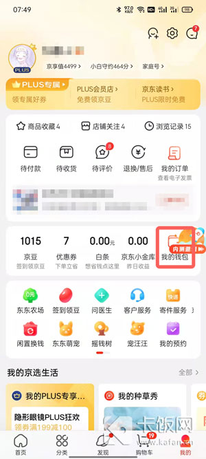 5、打开手机上安装的京东app,在【我的】界面点击【我的钱包】;