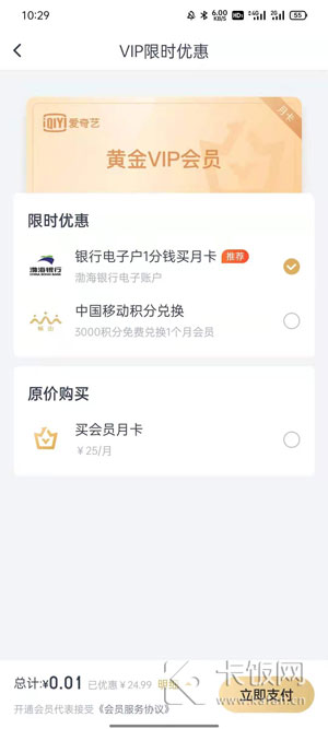 3、选择使用渤海银行卡开通电子账号,可以一分钱购买1个月会员;