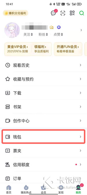 2、也可以通过爱奇艺【我的】页面点击【钱包】进入;